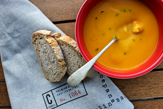 - Assim que os legumes estiverem macios, trituramos o preparado com a ajuda da varinha mágica (ou liquidificador) até obtermos um creme liso e aveludado.