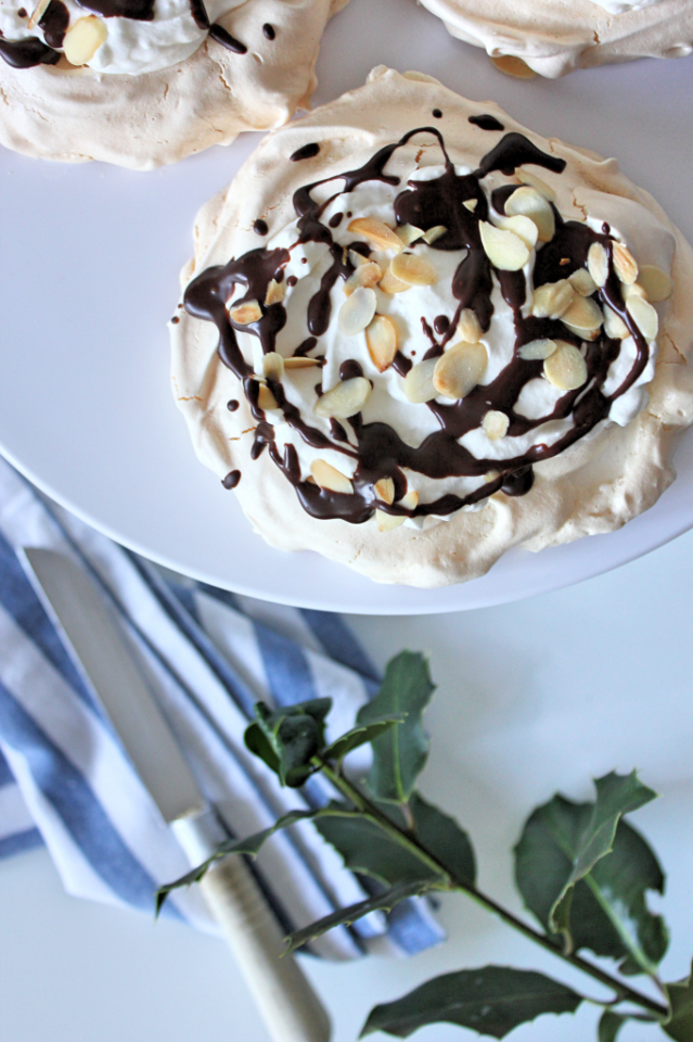 A receita é muito simples e tem tudo o que queremos: merengue crocante, natas frescas, suaves e doces que se desfazem na boca, o contraste do chocolate amargo ainda quente e os pedacinhos de amêndoa para trincar e deixar a boca a explodir de alegria.